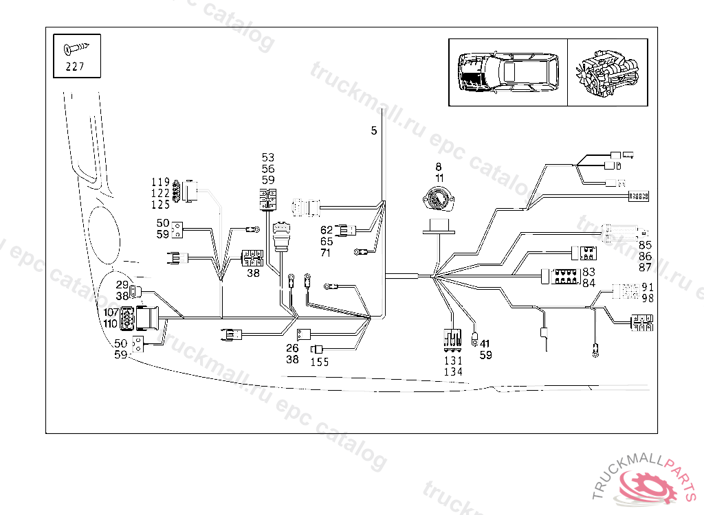 CABLE HARNESS ENGINE CABLE HARNESS,BODY MOUNTED, A 698507 X 012425 EXCEPT CODE 809 ALSO INSTALLED IN VEHICLE FROM A 698508, X 012426 WITH CODE 808
