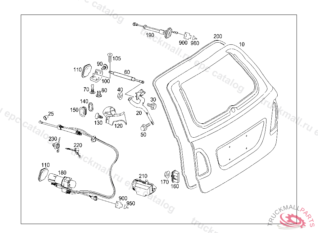 GAS-OPERATED SPRING REAR PANEL DOOR,LEFT, A 87431220050630806, Replaced By: A2119801964