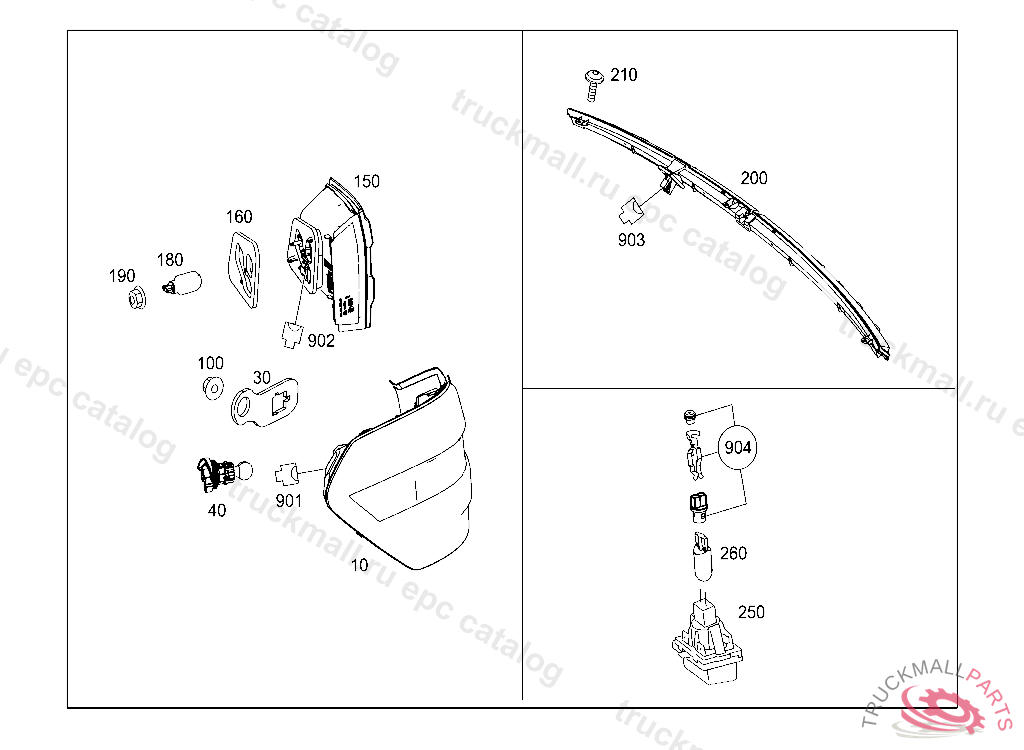 REAR LAMP COMBINATION TRUNK LID, RIGHT, FIRST EXHAUST STOCK OF OLD PARTS UP TO IDENT NO. A 20130131, Replaced By: A2129069402
