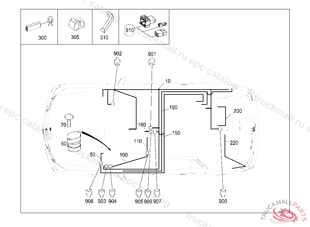 ELECTRICAL WIRING HARNESS FRAME FLOOR UNIT MAIN CABLE HARNESS, STATE IDENT NO. WHEN ORDERING THE CORRESPONDING SPECIAL EQUIPMENT IS CONTAINED IN THE WIRING HARNESS ACCORDING TO THE VEHICLE PRODUCTION NUMBER