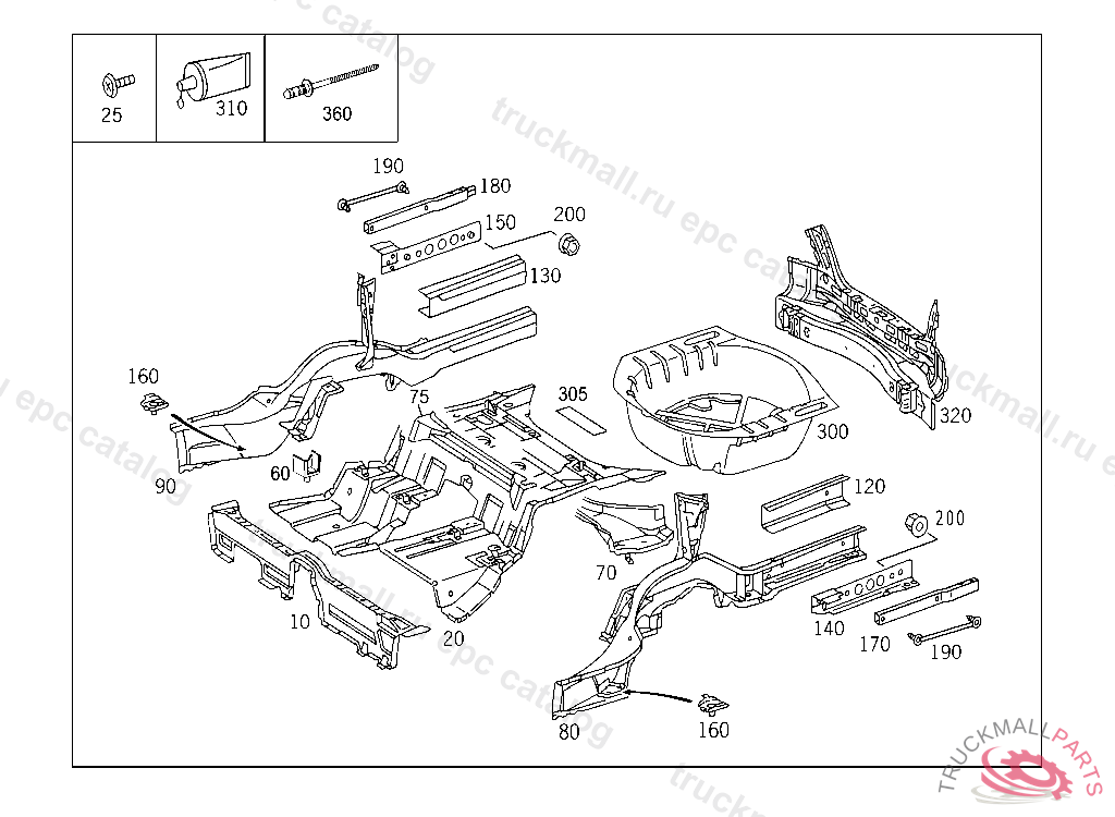 SPARE WHEEL WELL REAR END FLOOR, INCLUDE IN ORDER ON VEHICLES WITHOUT CODE 479 1 X A 215 682 09 41, 1 X A 215 682 10 41, 6 X A 123 990 02 92