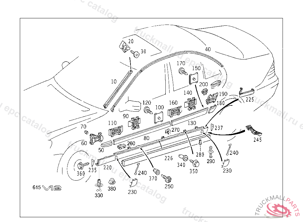 SEAL (WATER DEFLECTOR),RIGHT, A 26144820011018, Replaced By: A2206903898, +001A2206903798