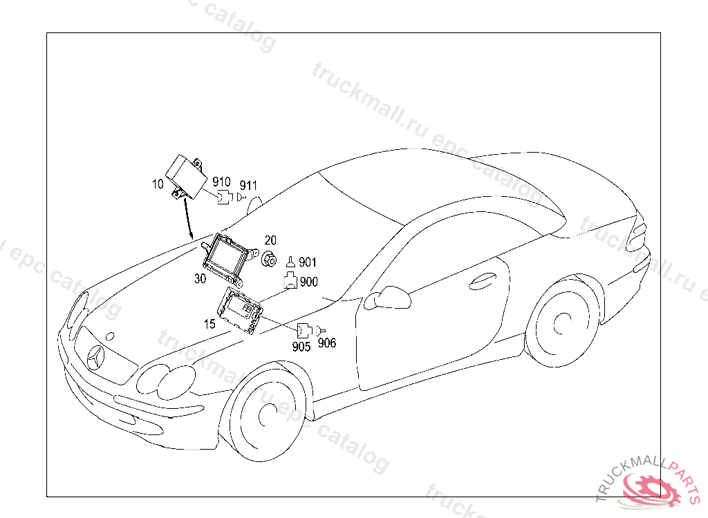 CONTROL UNIT SYSTEM DIAGNOSIS ZGW, FIRST EXHAUST STOCK OF OLD PARTS UP TO IDENT NO. A 03590020030217 CONTROL MODULE MUST BE FLASHED WITH ATTENDANT FLASHWARE, Replaced By: A2205402645