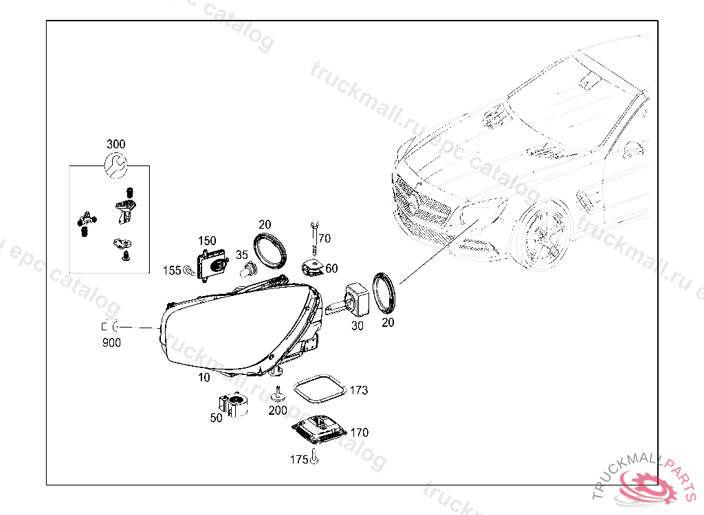 HEADLAMP UNIT LEFT, FIRST EXHAUST STOCK OF OLD PARTS UP TO IDENT NO. F 20130328, Replaced By: A2318207161