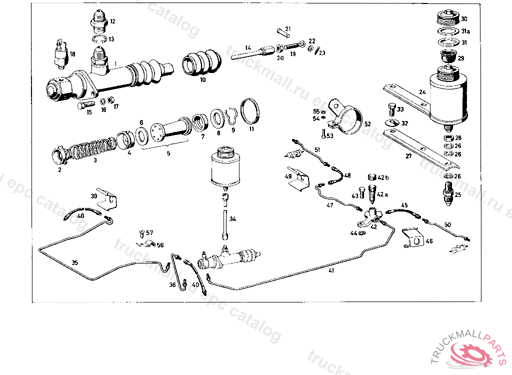MAIN BRAKE CYLINDER 1". MASTER CYLINDER DIA. 1" WITH BREATHER VALVE WITHOUT BRAKE LIGHT SWITCH UP TO CHASSIS 8505732 EXCHANGE SCREWED NIPPLE 000 428 12 30 AGAIN, Replaced By: A0004306101