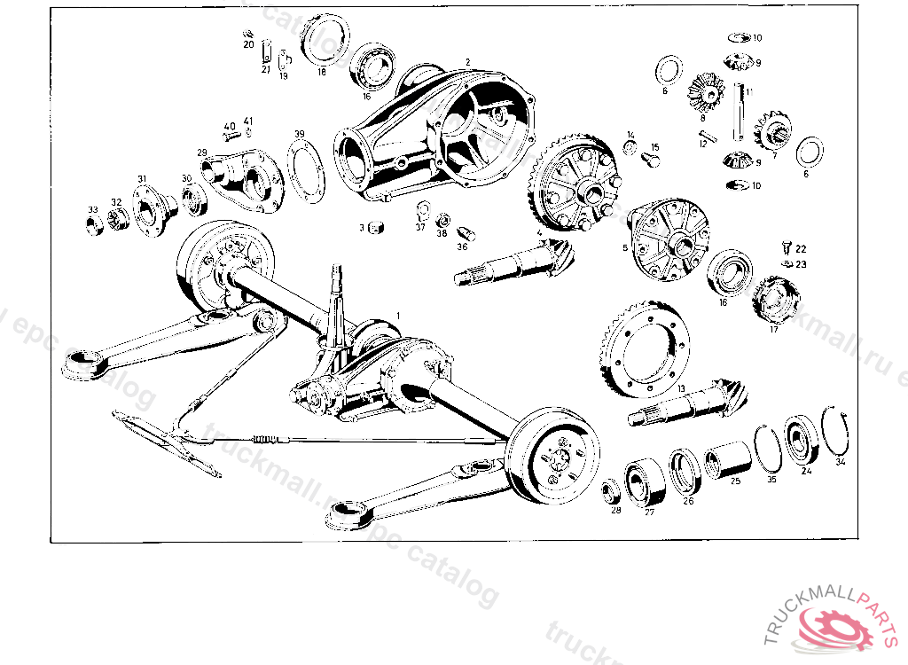 DIFFERENTIAL GEAR,. DIFFERENTIAL GEAR, COMPLETE WITHOUT TAPERED ROLLER BEARING, RATIO 1:4.1 EXPORT FOR MADEIRA AND HONKONG