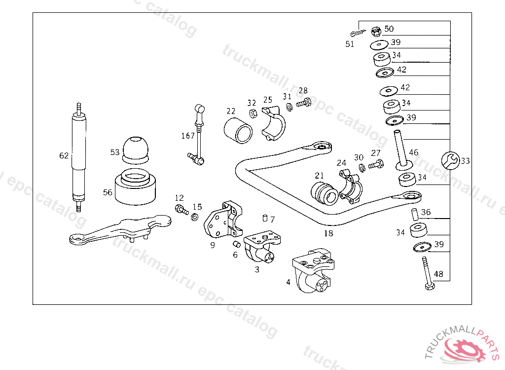 BEARING BRACKET LONGITUDINAL CONTROL ARM, NOT FOR USE WITH MERCEDES-BENZ BODY,UP TO IDENT NO.047200, FOR USE WITH MERCEDES-BENZ BODY,UP TO IDENT NO.047239