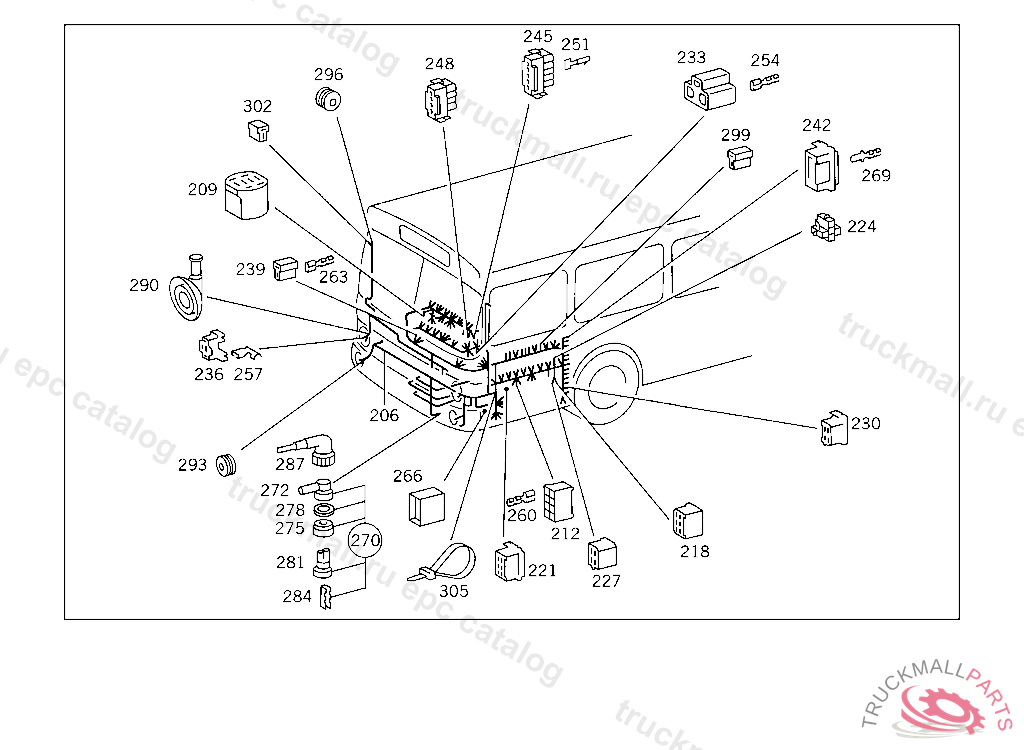 CABLE HARNESS MAIN CABLE,FRONT END, ON VEHICLES HAVING MERCEDES BENZ BODY FROM IDENT NO. 037434, ALSO INSTALLED ON 037456 ON VEHICLES HAVING NO MERCEDES BENZ BODY FROM IDENT NO. 037395, ALSO INSTALLED ON 037412