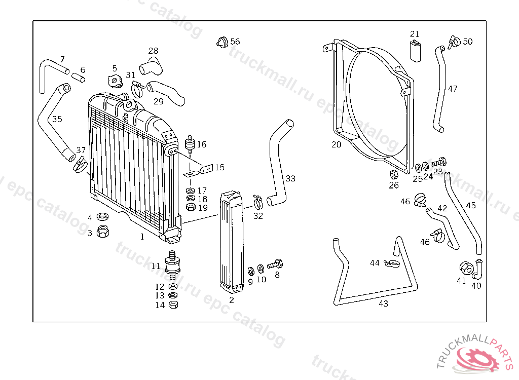 RADIATORBEHR, 309.0 UP TO CHASSIS 001150, 309.1 UP TO CHASSIS 015696 EXCEPT FOR:015539,015594,015609