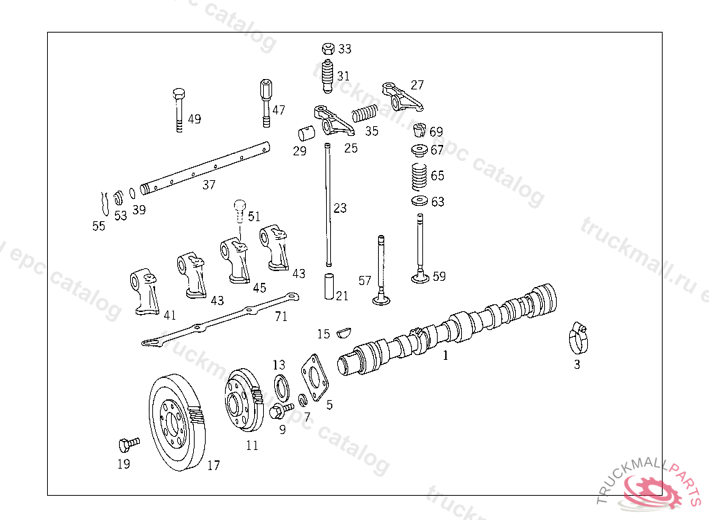 CAMSHAFT WITH INJECTION PUMP MOUNTED INJECTION TIMING DEVICE,LIFTING PIN WIDTH: 28 MM, IN THE CASE OF CAMSHAFT-DRIVEN AIR COMPRESSOR,ALSO ORDER: 352 130 04 16 CONNECTING ROD,352 131 25 33 PARTS KITBEARING SHELLS UP TO ENGINE 283201 YEAR OF MANUFACTURE 1978