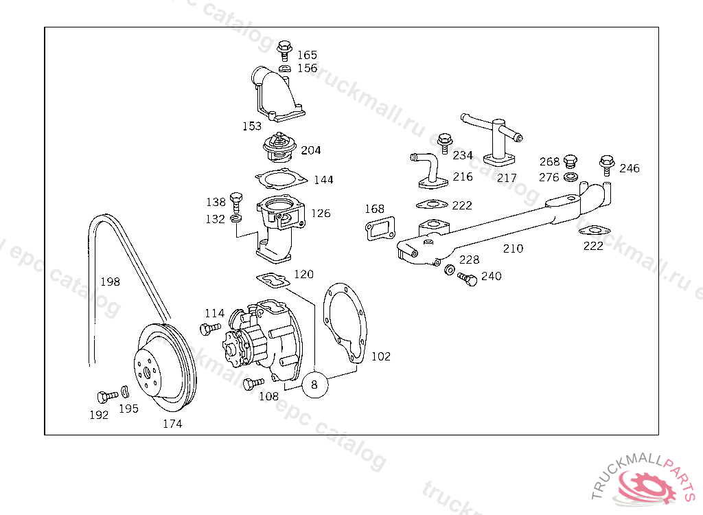 WATER PUMP , FIRST EXHAUST STOCK OF OLD PARTS UP TO ENGINE 430644 PART IS ONLY OR ALSO SUPPLIED AS RECONDITIONED PART, Replaced By: A3142002901