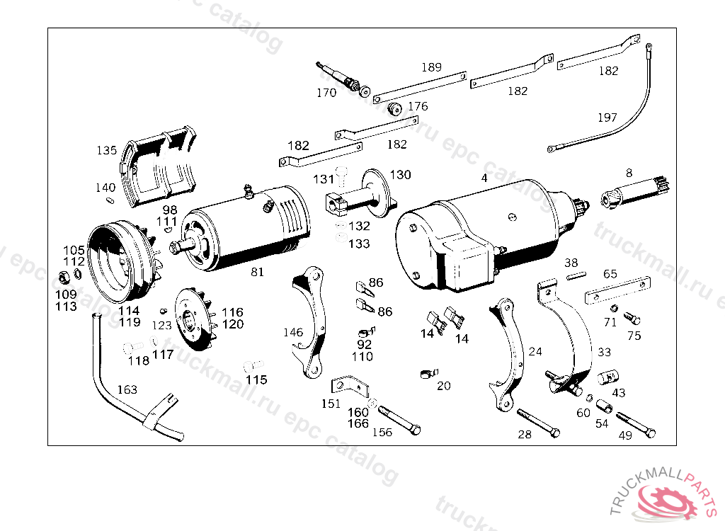 STARTING MOTOR24V, MB PART NO.000 151 41 01BOSCH PART NO. BPD 6/24 AR 9,MB PART NO.001 151 01 01BOSCH PART NO. BPD 6/24 AR 169,MB PART NO. 001 151 10 01BOSCH PART NO.BPD 6/24 AR 183