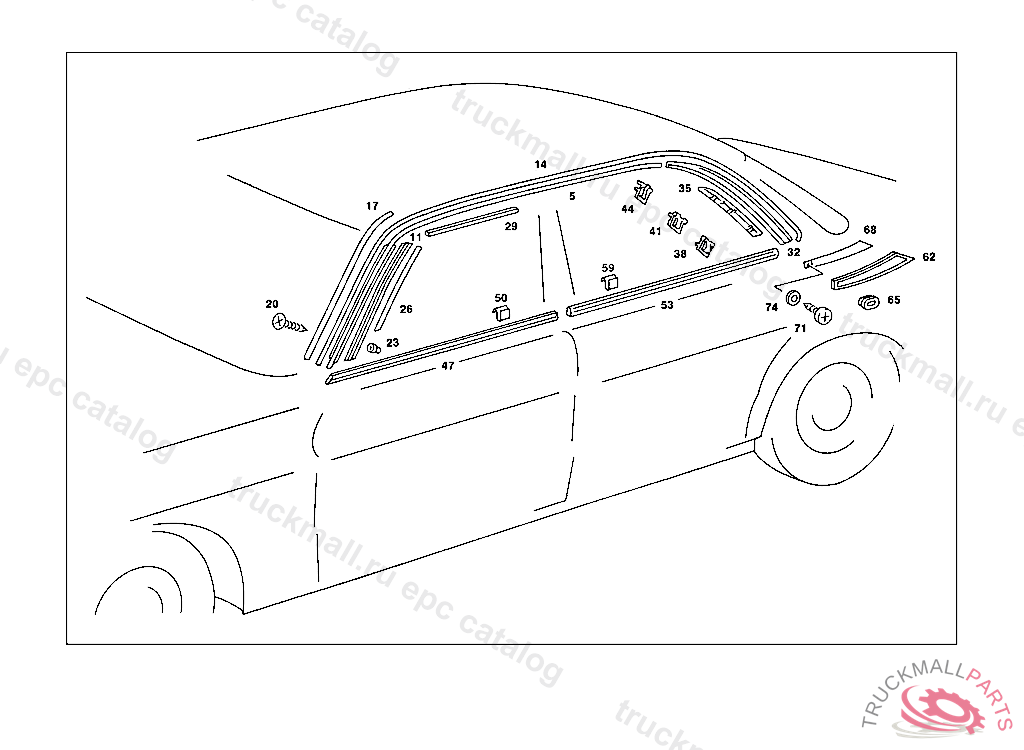 GARNISH MOULDING RIGHT,AT REAR END PILLAR, 023 048083 033 024473 123 033548 130 043492