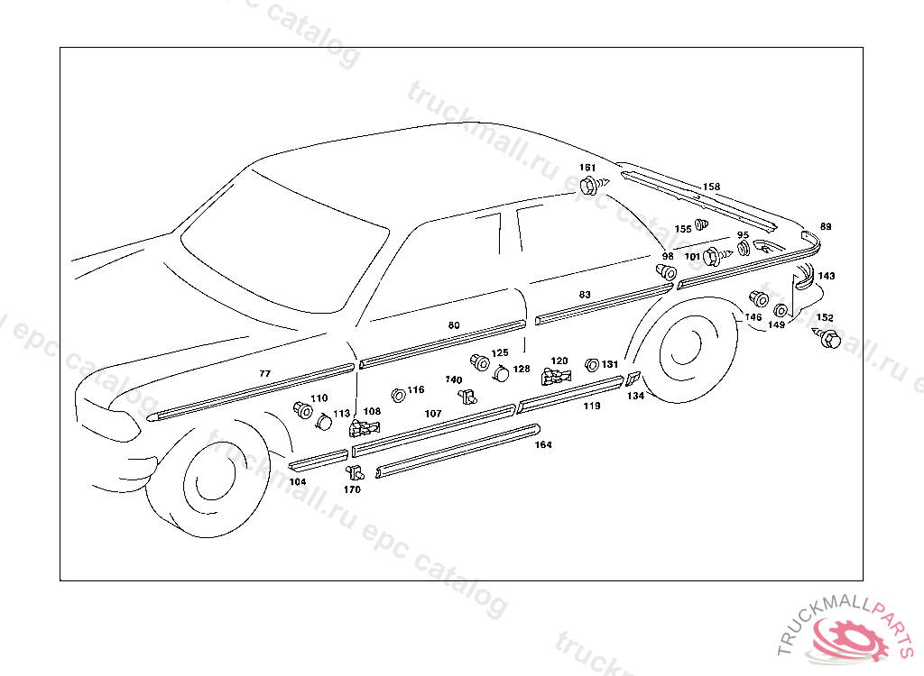 NUT BOTTOM GARNISH MOULDING TO REAR DOOR, REAR, 000 074246 003 036142 EXCEPT FOR 035979,036029 007 033468 102 053529 103 053849 105 068456 ALSO INSTALLED ON 068265,068282