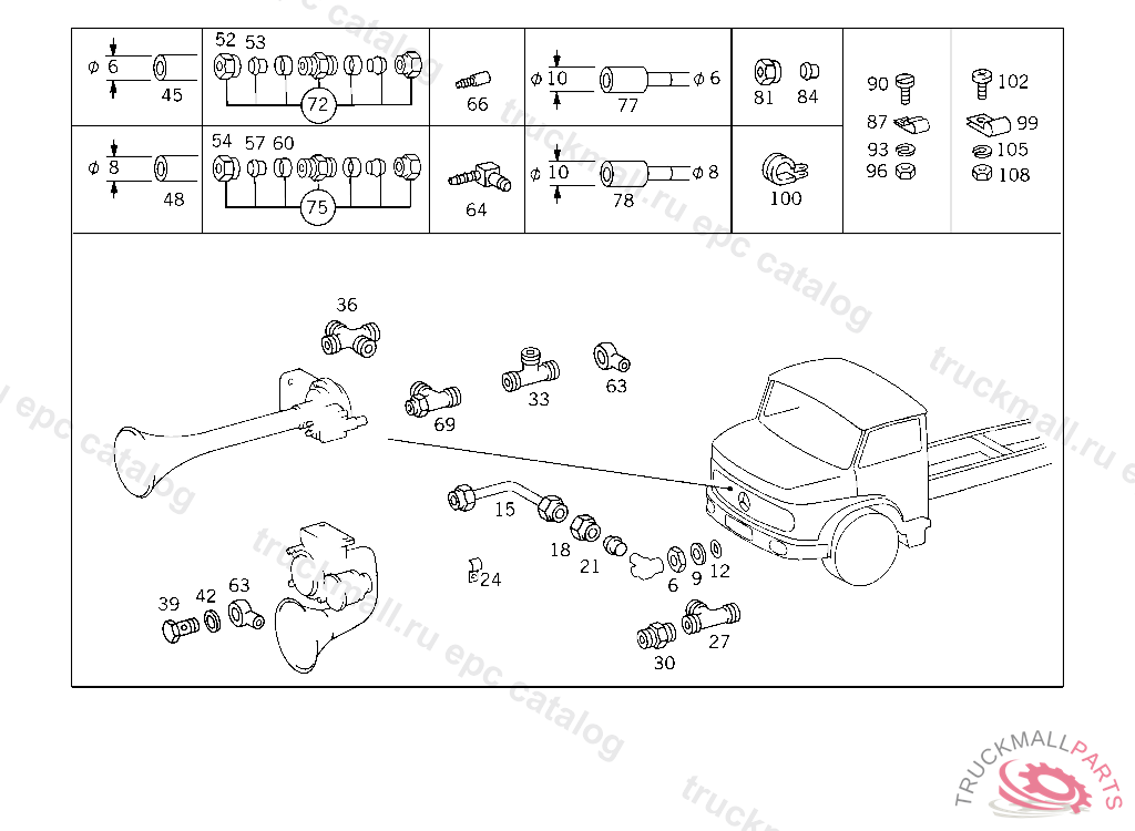 LINE FROM T-FITTING TO AIR HORN TO 000 542 35 20,000 542 06 21
