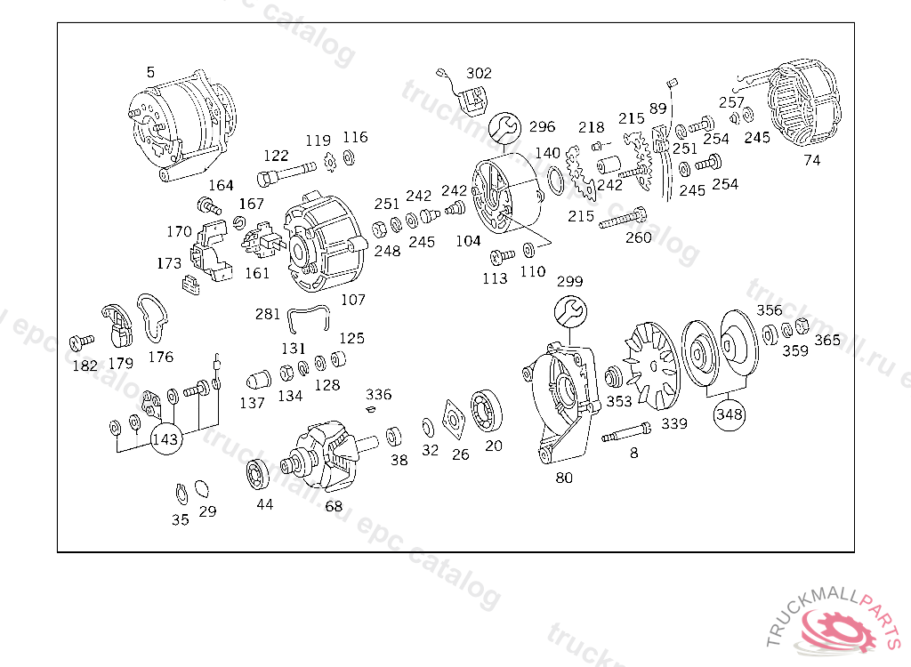 ALTERNATOR THREE-PHASE, UP TO IDENT NO. 556499 EXCEPT 543411,543418,551148,551588,551771,552021,552392,552551,552654,552687,552694,552840,552846,553000, 553005,553105,553112,553185,553210,553226,553264,553332,553602,553651,553660,553795,554081,554103, 554107,554213,554266,554270,554333,554993,555186,555885,555902,555992,556045,556120,556138,556143, 556146,556169,556181,556184,556187,556189,556194-556197,556215. PART IS ONLY OR ALSO SUPPLIED AS RECONDITIONED PART
