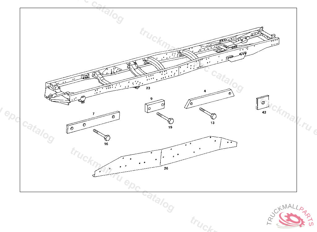 SCREW LEAF SPRING TO STRUT, USED WITH MEDIUM-LENGTH AND LONG MERCEDES-BENZ CABS