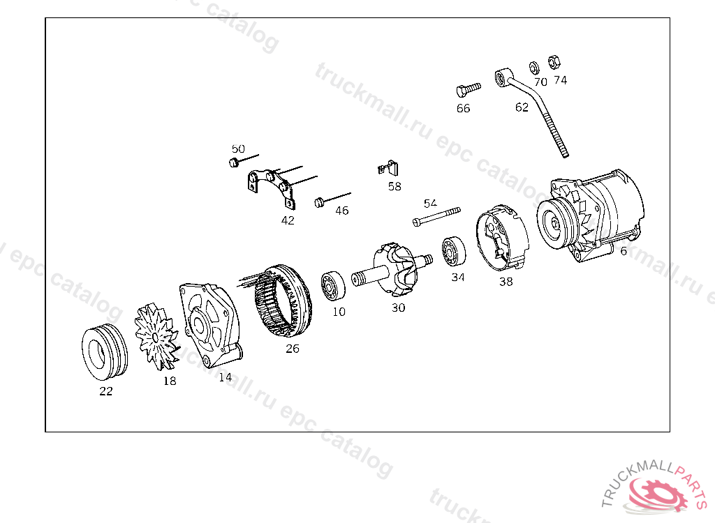 ALTERNATOR WITH PULLEY, LESS REGULATOR 12 V/55 A