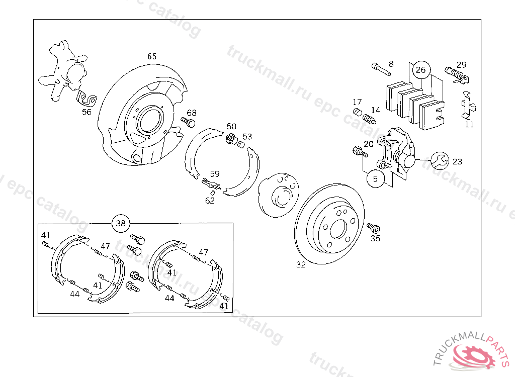 BRAKE SHOE RANGE OF DELIVERY, WHEN SELLING BRAKE LININGS TO END USERS/DESK BUYERS THE A 203 005 25 99 IS TO BE HANDED OVER FREE OF CHARGE