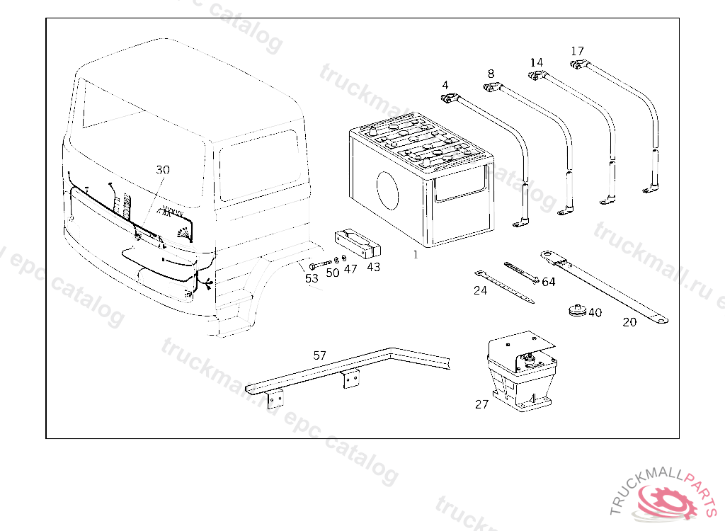 CABLE HARNESS FROM BATTERY CHANGE-OVER SWITCH TO CAB CROSS MEMBER, 10/20 FROM CHASSIS 823830,50/60 FROM CHASSIS 825090