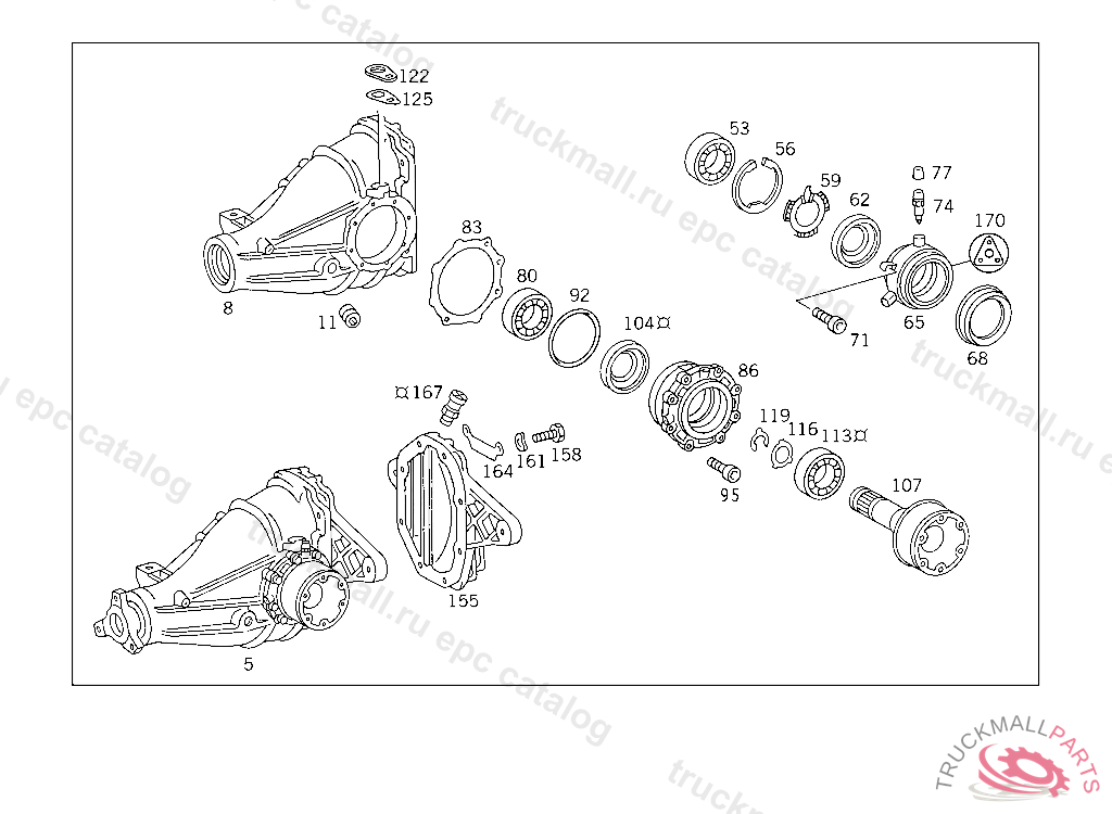 SPACER WASHER AS REQUIRED 0.8 MM, REAR AXLE HOUSING WITH DIFFERENTIAL,LESS SIDE BEARING CABS 003 103239 007 087551 086 007106 093 008992 102,103 240183 105 231729 183 015395 190 021957 193 002093 200 027295 280 000777 283 003632