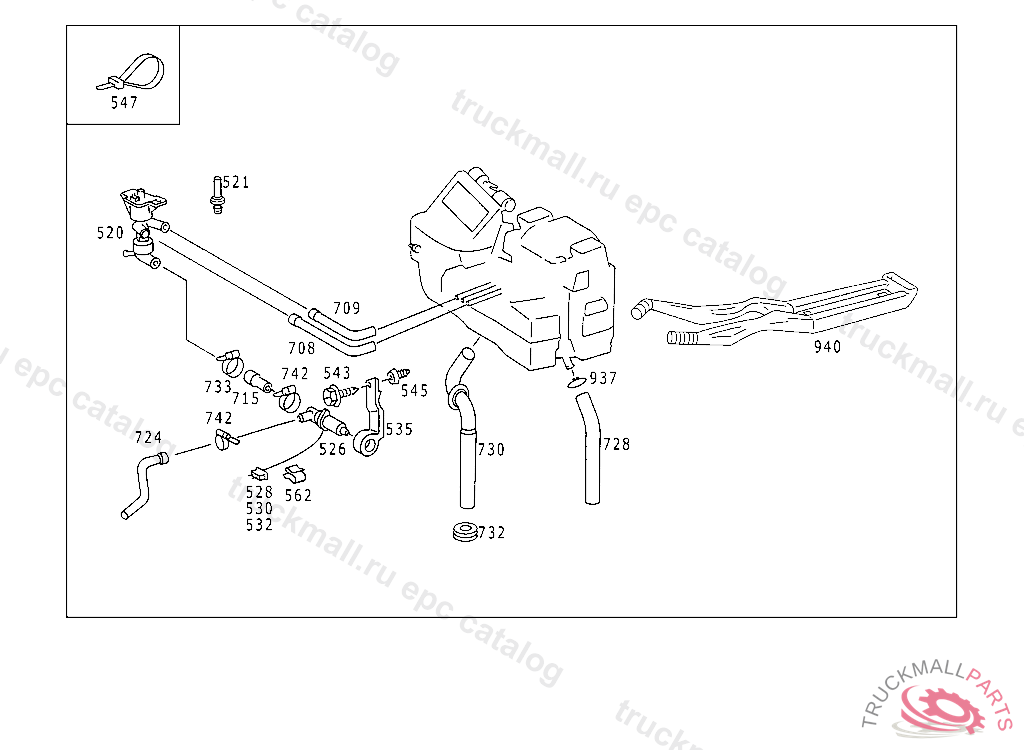 HOSE FROM RECIRCULATING PUMP TO RETURN LINE, UP TO CHASSIS 126.021 003042 126.022,023 010000