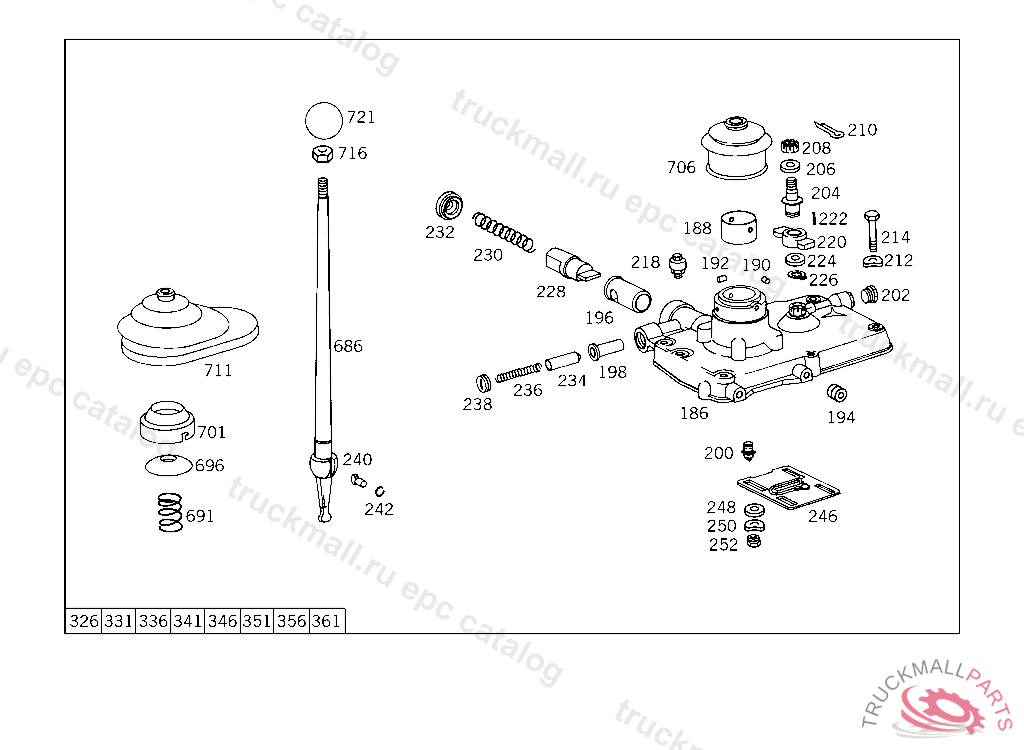 LEVER SHIFTING DOME, UP TO IDENT NO. 207851 FROM IDENT NO. 207852 SEE MOCROFICHE, MODEL 712.0