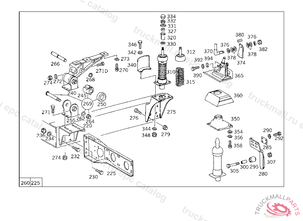 GUIDE CAB SUSPENSION,REAR RIGHT, 385.068,069 ON VEHICLES WITH DB CAB ONLY 385.019 FOR USE WITH SHORT MERCEDES-BENZ CAB5 204965