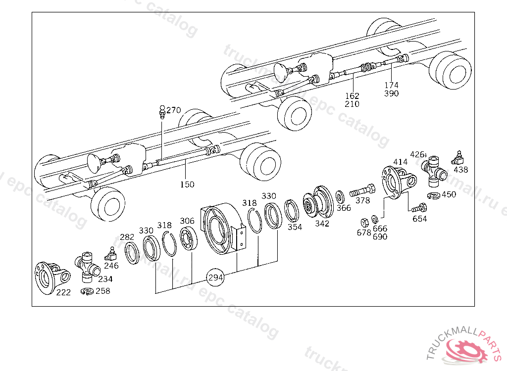 PROPELLER SHAFT FROM PROPELLER SHAFT BEARING II TO REAR AXLE 1490 MM, PART IS ONLY OR ALSO SUPPLIED AS RECONDITIONED PART