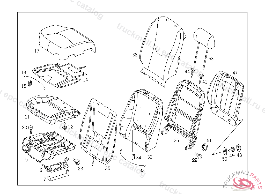 CAP PANELLING TO BACKREST, A 145273 X 707756 EXCEPT CODE 809 ALSO INSTALLED IN VEHICLE TO A 145272, X 707755 WITH CODE 800.......I .......INO.9B96INO.7E33 INO.1A26 INO.9B96 I .......I .......I .......I .......I