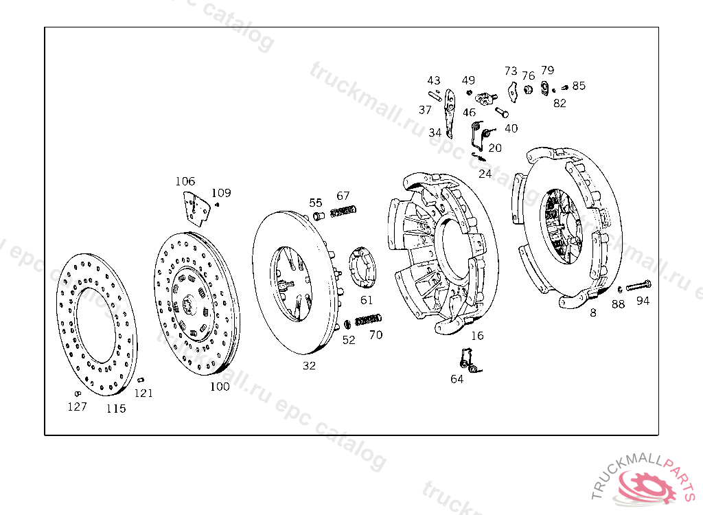 LEAF SPRING THIGH SPRING SUSPENDED IN CLUTCH PRESSURE PLATE HOUSING