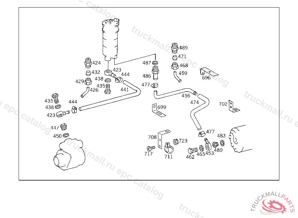 PIPE FROM OIL TANK TO POWER STEERING PUMP AT TRANSMISSION