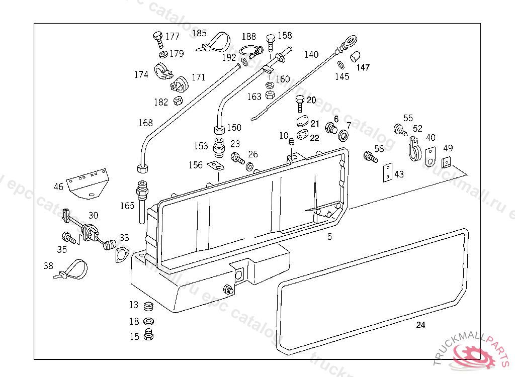 OIL PAN , OIL SCAVENGE BORE TO BE LOCKED BY MEANS OF 007603 018101 SEAL RING AND 915048 018000 SCREW PLUG030363 407.913407.907,911