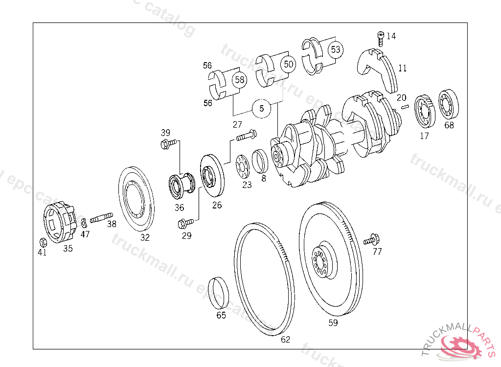 CRANKSHAFT WITH CRANKSHAFT BEARING SHELLS AND CONNECTING ROD BEARING SHELLS, PART IS ONLY OR ALSO SUPPLIED AS RECONDITIONED PART