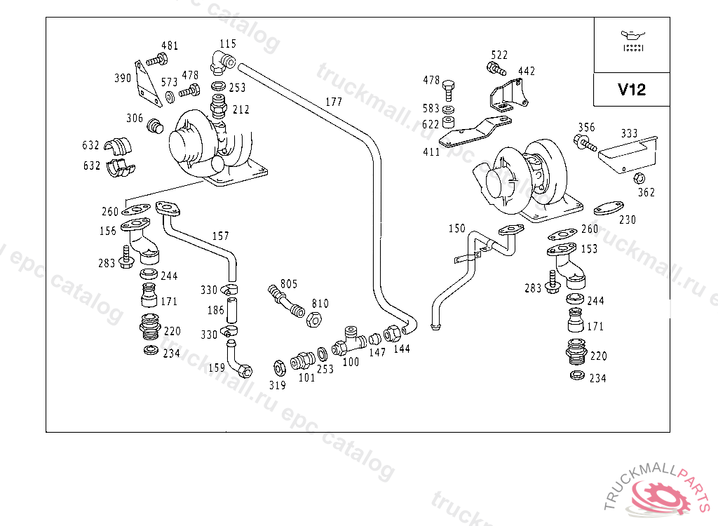OIL LINE EXHAUST GAS TURBOCHARGER OIL RETURN, RIGHT