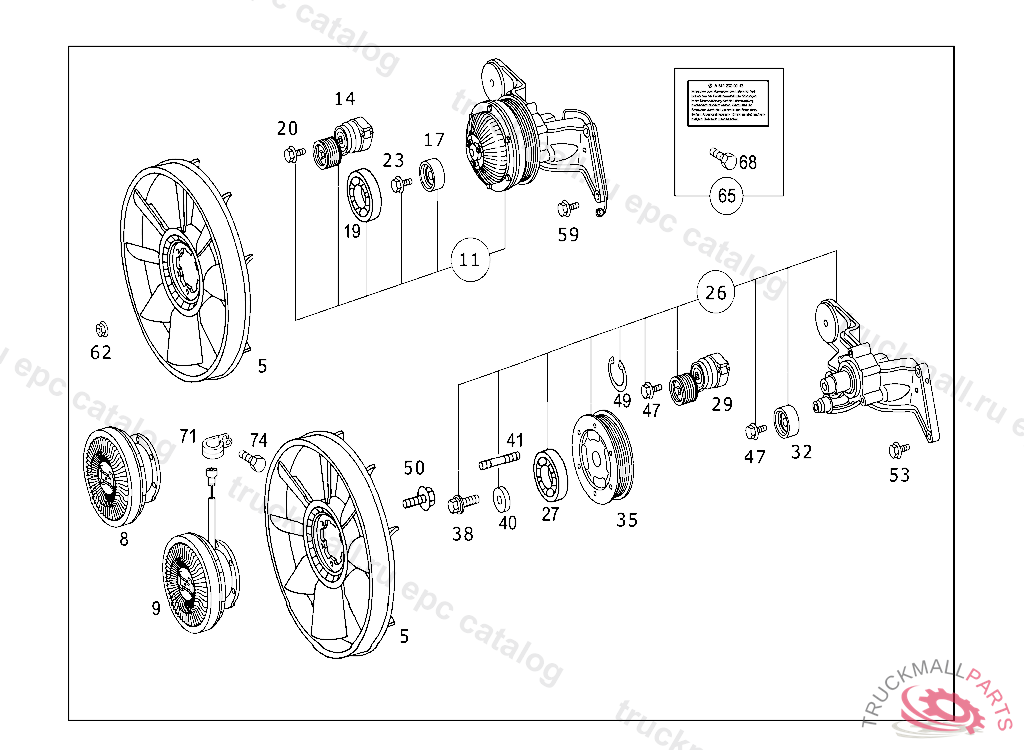 Mercedes A0002009022 - Вискомуфта привода вентилятора со шкивом MB Actros/Axor,Bus Eng.OM457LA, o233 mm