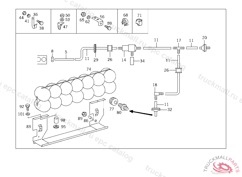 LINE VACUUM LINE, UP TO IDENT NO. 941505 EXCEPT FOR 899081-941503 ONLY WITH OM601/OM602 ENGINE