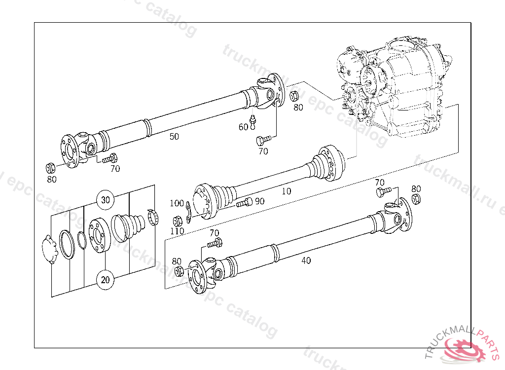 PROPELLER SHAFT FROM TRANSFER CASE TO FRONT AXLE, FOR MODOFYING GREASE NIPPLES ON 500GE ORDER ADDITIONALLY: 1X GREASE NIPPLE H WA 463 997 01 88 PART IS ONLY OR ALSO SUPPLIED AS RECONDITIONED PART