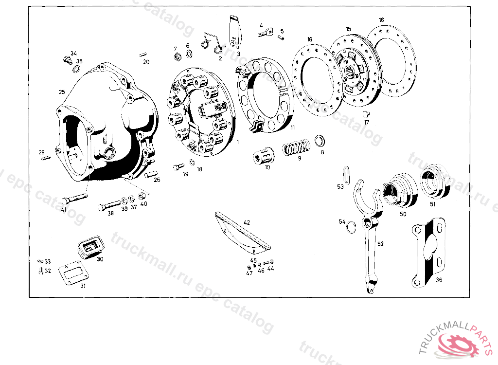 CLUTCH PRESSURE PLATE , UP TO CHASSIS 5501479 WITH THE EXCEPTION OF 5501404, 5501439, 5501443 5501446, TO 5501448 5501450, 5501452, 5501453 5501455, TO 5501467 5501469, 5501471, 5501474, 5501475