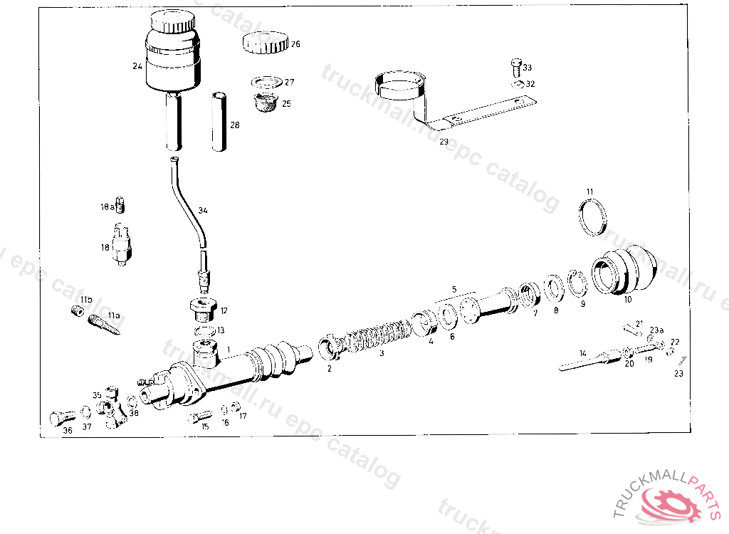 MASTER CYLINDER DIA.1 1/16" WITH BREATHER VALVE WITHOUT CONNECTION FOR BRAKE LIGHT SWITCH UP TO CHASSIS 8505732 EXCHANGE SCREWED NIPPLE