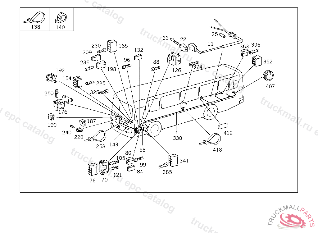 PIN BUSHING HOUSING. PLUG HOUSING FROM CHASSIS/CAB CONNECTION POINT TO TACHOGRAPH