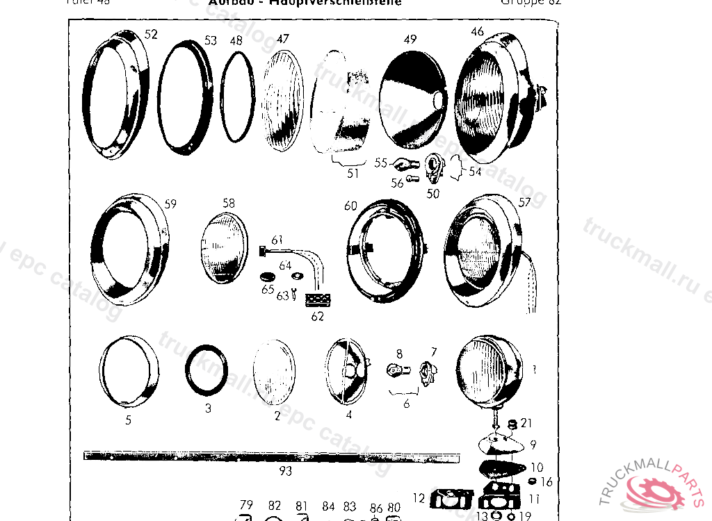 COVER WITH LAMP SOCKET. DECKEL MIT LAMPENHALTER UND SCHEIBE FUR KENNZEICHENSCHILDBELEUCHTUNG AB AUFBAU-NR.: CA188 13 00008/53 CP188 17 00010/53 R1