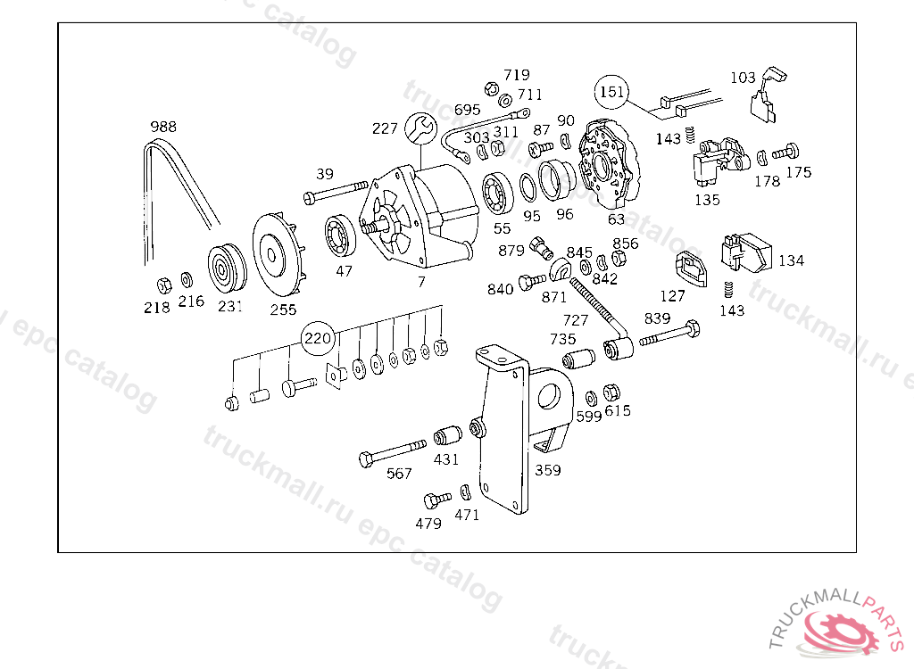 ALTERNATOR THREE-PHASE, UP TO IDENT NO. 556499 EXCEPT 543411,543418,551148,551588,551771,552021,552392,552551,552654,552687,552694,552840,552846,553000, 553005,553105,553112,553185,553210,553226,553264,553332,553602,553651,553660,553795,554081,554103, 554107,554213,554266,554270,554333,554993,555186,555885,555902,555992,556045,556120,556138,556143, 556146,556169,556181,556184,556187,556189,556194-556197,556215. PART IS ONLY OR ALSO SUPPLIED AS RECONDITIONED PART