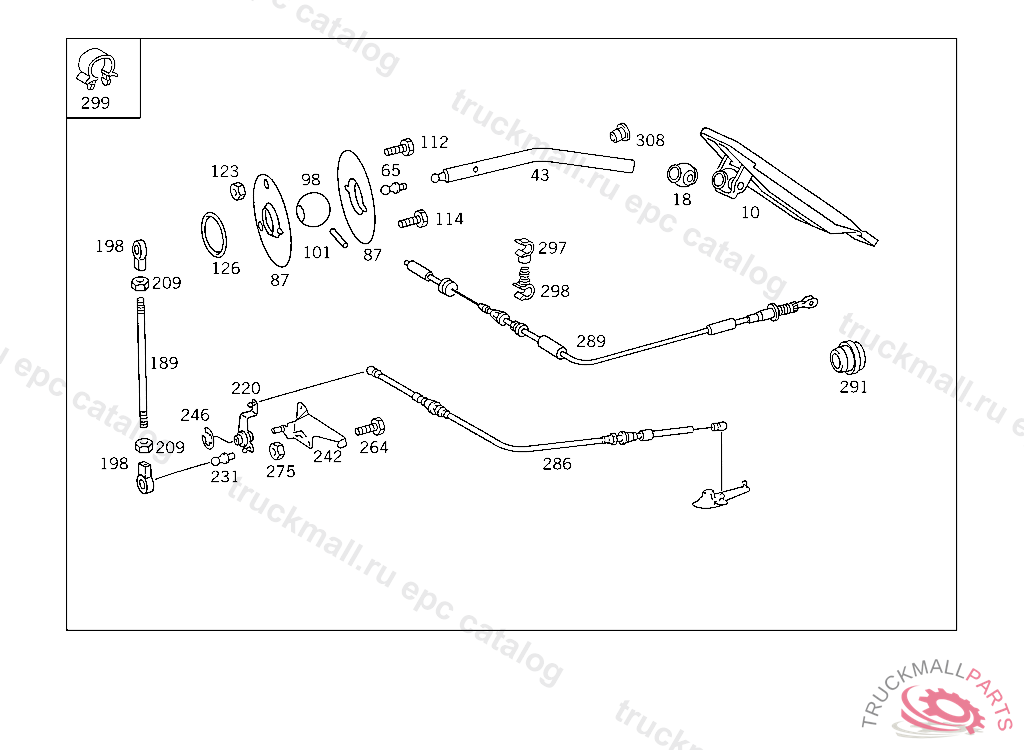 CYLINDRICAL PIN PEDAL LEVER, UP TO IDENT NO. 941505 EXCEPT FOR 899081-941503 ONLY WITH OM601/OM602 ENGINE