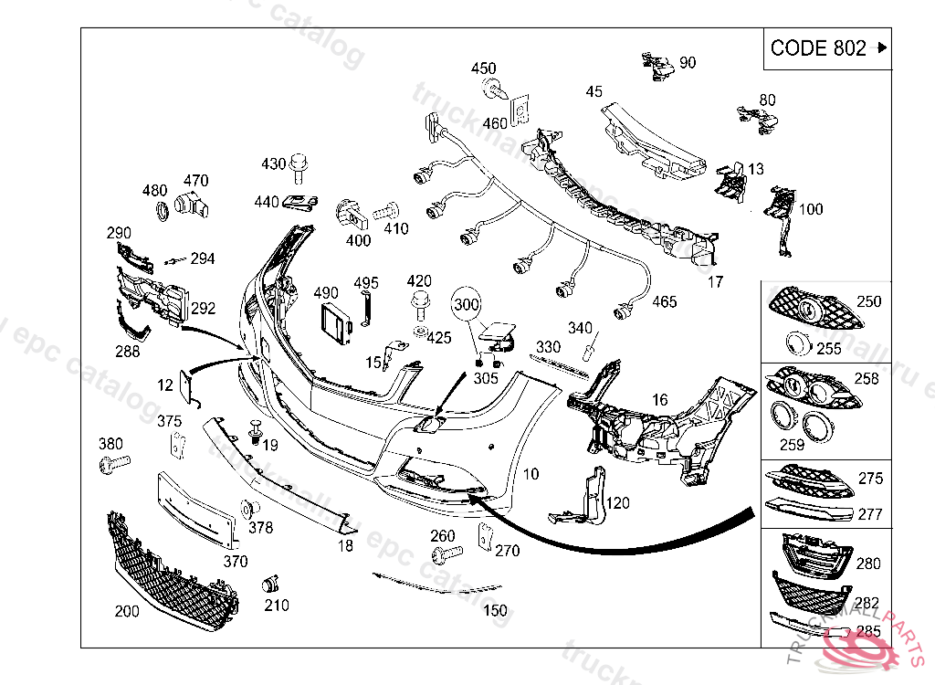PANELING FRONT BUMPER, A 11984820080109 L 00481220071231 V 00024020071231 F 10701020080102 R 01717520080109, Replaced By: A2048804240, +001A2048802124, +001A2048802224