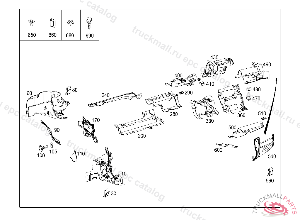 SCREENING TO FIRE WALL,RECHTS, F 84944720120108, Replaced By: A2046803422