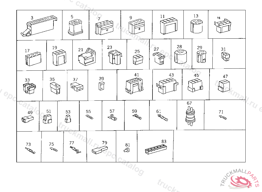 PIN BUSHING HOUSING. PLUG HOUSING FROM CHASSIS/CAB CONNECTION POINT TO TACHOGRAPH