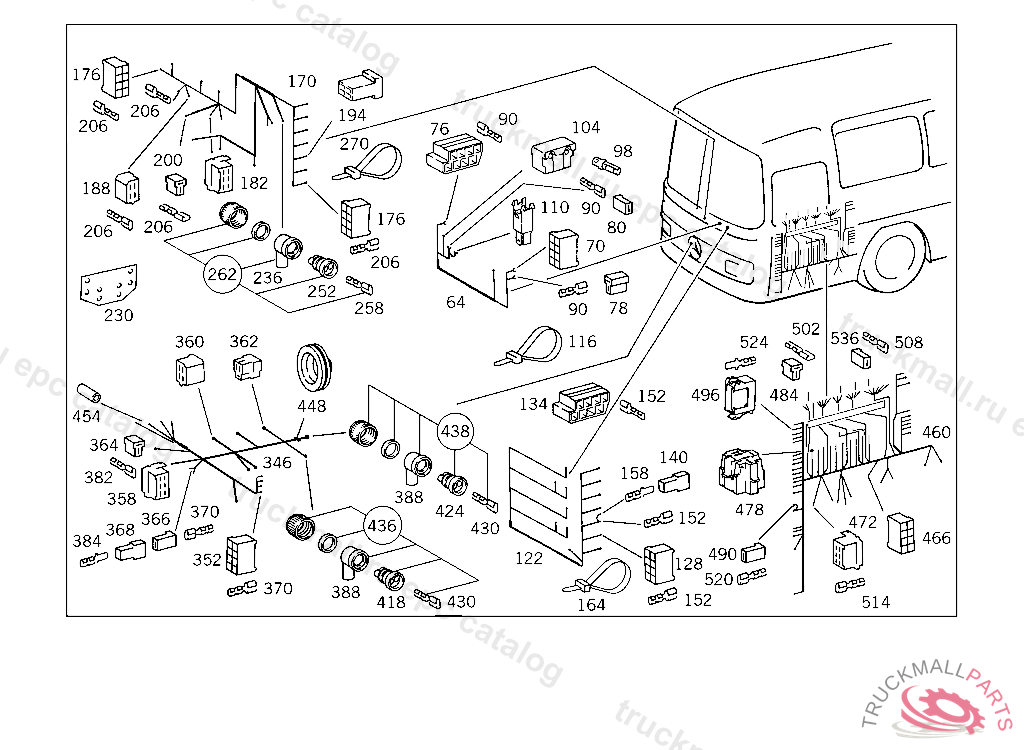 CABLE HARNESS MAIN CABLE,REAR END, NOT FOR USE WITH MERCEDES-BENZ BODY FROM IDENT NO. 038229 FOR USE WITH MERCEDES-BENZ BODY FROM IDENT NO. 038391,ALSO INSTALLED ON