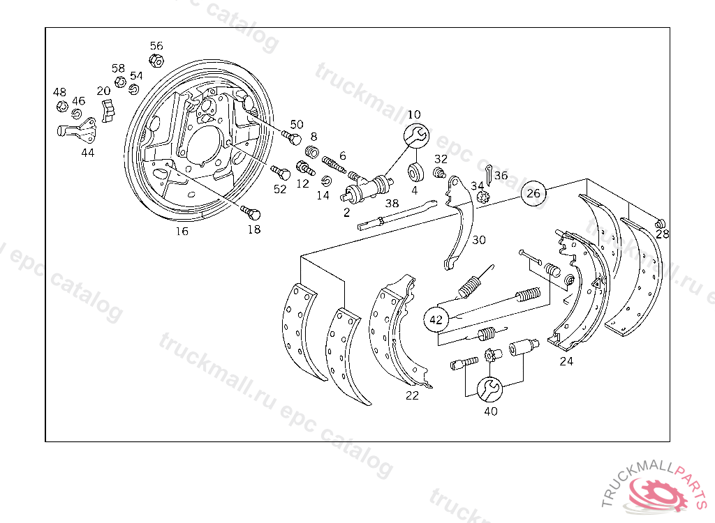 BRAKE SHOE REAR, WITH ASBESTOS-FREE LINING HAVING A THICKNESS OF: 10.00 MM,180280180281 SEE UNIT MICROFICHE,MODEL: 741.0