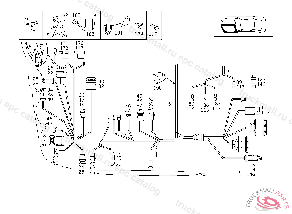 CABLE HARNESS ENGINE CABLE HARNESS,BODY MOUNTED, F 046207 EXCEPT CODE 809 ALSO INSTALLED IN VEHICLE FROM F 046208 WITH CODE 808